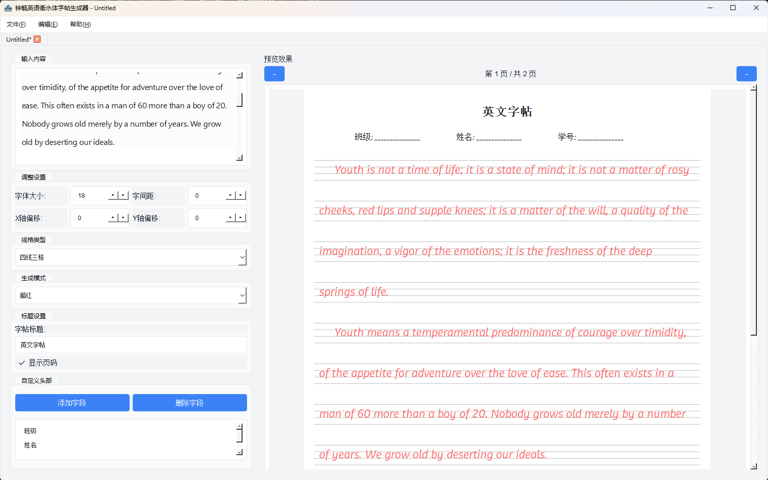钟毓英语衡水体字帖生成器 1.1.0 版本重磅更新!多文件标签页功能正式上线