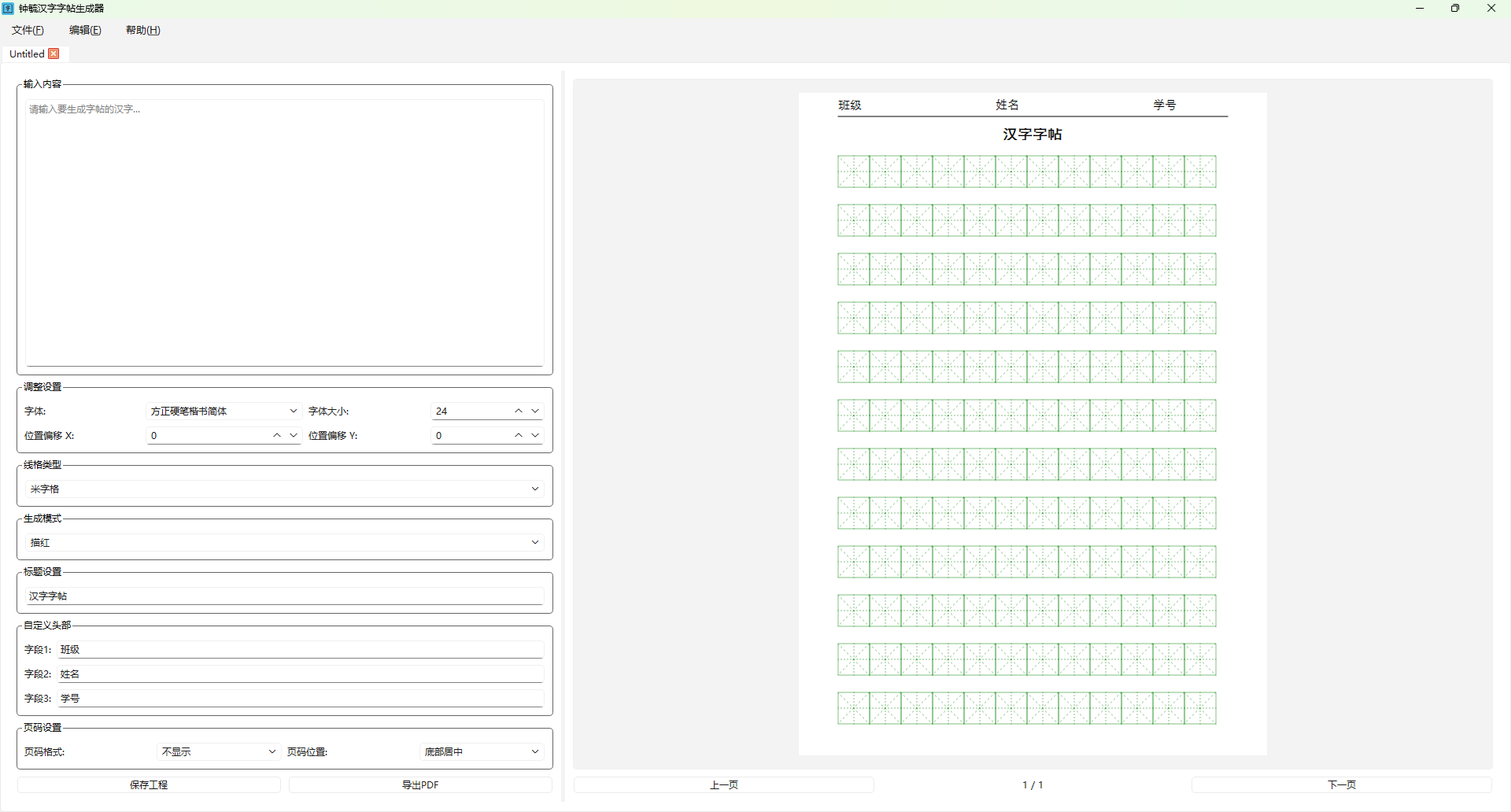 - **PDF导出**:将生成的字帖导出为PDF文件,方便打印